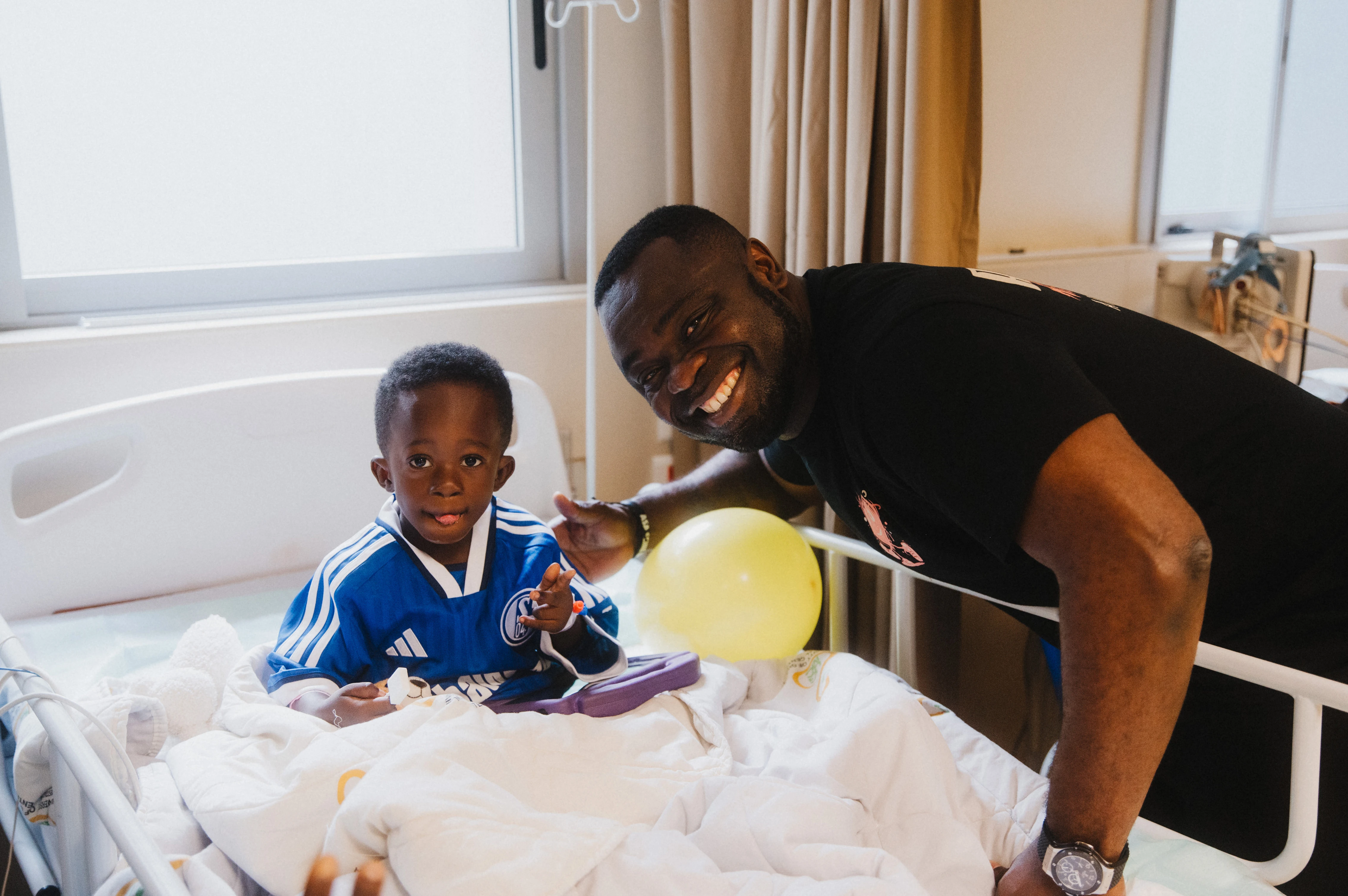 Seit 2023 helfen wir in Ghana. Warum? Weil Gerald Asamoah seinem Geburtsland etwas zurückgeben möchte. Und weil wir dort wirklich etwas bewegen können. Mit dem Verein kinderherzen e.V. und dem ehrenamtlichen medizinischen Team vom Herzzentrum Duisburg operieren wir dort ein- bis zweimal im Jahr herzkranke Kinder direkt in der Hauptstadt Accra. Denn auch in Ghana werden pro Jahr rund 8.000 Kinder mit einem Herzfehler geboren; nur ein Bruchteil davon wird überhaupt diagnostiziert, geschweige denn behandelt. Die Kosten werden von keiner Krankenversicherung gedeckt und im ganzen Land gibt es nur eine (!) Kinderkardiologin. Es fehlt schlicht das Know-how. Aber: Am lokalen Korle Bu-Krankenhaus entwickelt sich ein herzchirurgisches und kinderkardiologisches Zentrum. Deshalb unterstützen wir dort mit unseren Missionen – und konnten gemeinsam bereits über 60 Kindern das Leben retten.